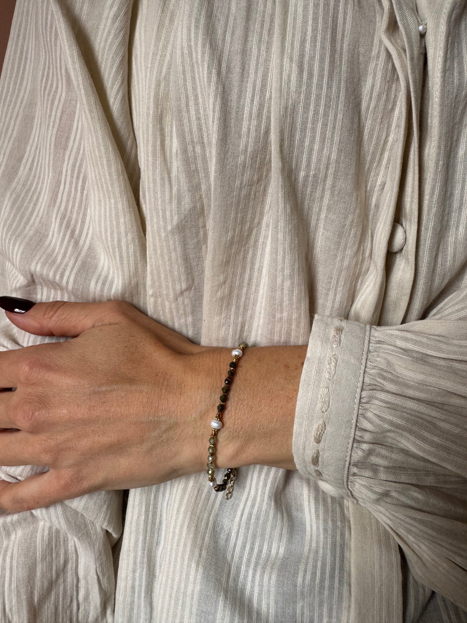 Acciaio inossidabile ,pietrine e perle di fiume