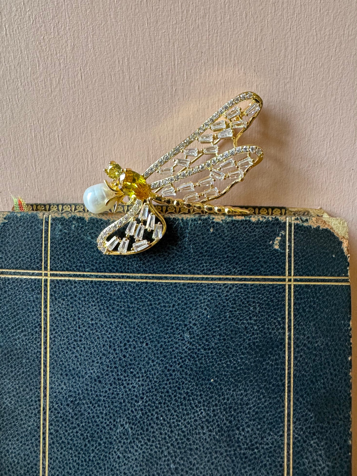Spilla libellula con perla